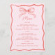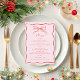 Lleva el encanto vintage a tu mesa con este menú de cena navideña francesa con lazo retro rosa y rojo. Con tipografía elegante y un diseño clásico, es perfecto para una boda de Navidad, fiesta de Navidad o velada de invierno. Personaliza con tus propios platos para que coincida con tu comida festiva. Ideal para imprimir en casa o profesionalmente. Un toque chic y elegante para la decoración de tu mesa de cena navideña.