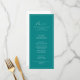 Esta elegante caligrafía geométrica e idílica tarjeta de menú verde azulada para la cena es perfecta para un boda sencillo. El diseño, sencillo y elegante, presenta una tipografía de escritura clásica y elegante con un fondo verde azulado. Este menú se puede utilizar para la recepción de bodas, la cena de ensayo, la ducha de novia o cualquier otro evento.