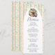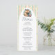 Esta tarjeta de menú de baby shower pastel presenta una divertida capybara bebiendo té con burbujas con rayas de puntos coloridos en tonos suaves. El diseño juguetón lo hace un detalle de mesa personalizado perfecto.