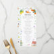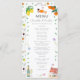 Menú boda de cítricos de temática francesa con plantillas fáciles de usar con escritura tipográfica moderna. Hermosos ilustraciones acuáticos de vino tinto y queso francés, vinos espumosos y flautas de champán, follaje verde, flores, notas musicales y un castillo francés con bandera francesa. Pintura original de la artista Catherine Sweetman