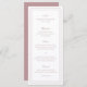 Menú boda rosa rosa polvoriento de estilo clásico con un diseño sencillo y minimalista con su monograma, nombres y fecha boda en la parte superior junto con su menú rodeado de un borde doble. Los tipos de letra alternan entre y el guión elegante, un serif tradicional y sans serif minimalistas. Este menú es excelente para un boda formal.