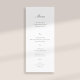 Una elegante y sofisticada pieza de acompañamiento formal para la invitación a la boda: la carta del menú, que presenta una caligrafía elegante con delicados florecimientos y un fondo blanco de marfil. Esta carta sencilla, clásica y tradicional de boda es una encantadora elección para parejas que aman el arte, los diseños artísticos, el arte original y único y los diseños tradicionales y formales de boda. Personalizar cada línea de texto. Elementos coincidentes disponibles.