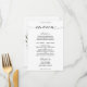 Un menú clásico de cena que ofrece selecciones de aperitivos, plato principal y postre. Los títulos están escritos en una caligrafía clásica con florituras en negro y las selecciones del menú están en un texto en bloque fácil de leer. El menú es totalmente personalizable para cualquier ocasión.