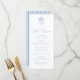 Share your wedding menu with this classic blue hydrangea wedding menu, designed to coordinate seamlessly with timeless and traditional wedding stationery. This elegant menu features a hand-drawn blue hydrangea illustration at the top, followed by “The Menu” displayed in refined blue calligraphy script. Your menu selections are presented below in clean, easy-to-read serif lettering for a balanced and sophisticated layout. The back of the menu displays a coordinating blue and white striped pattern, adding a tailored finishing touch. Perfect for classic, garden, and estate weddings, this wedding menu card adds a thoughtful and polished detail to your table setting. Personalize the text to create a cohesive menu that complements your wedding stationery suite beautifully.