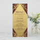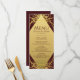 En esta elegante carta se exponen detalles de una lujosa forma de diamante dorado con una mezcla de purpurina dorado en un rico fondo burdeos. Puede personalizarlo por completo haciendo clic en el enlace personalizar. Forma parte de una magnífica suite boda que incluye tarjetas de plaza, tarjetas de número de mesa y muchos otros artículos.