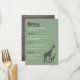 Estos menús bodas de diseño de safari africano son perfectos para cualquier pareja que planee una celebración rústica boda. Con un diseño único de jirafa de arcilla, seguro que impresionará a sus huéspedes. La carta perfecta para cualquier fiesta con temática de safari, como duchas de novias, compromisos, duchas de bodas, fiestas de cumpleaños y mucho más.