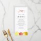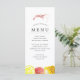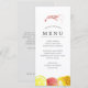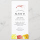 Menús personalizados de comida con tema de camarones para su próxima fiesta de camarones hervidos o evento de mariscos. Cuenta con una ilustración de estilo acuarela de un camarón. Debajo de esto hay espacios para la información de su menú de evento único.