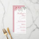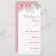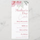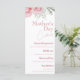 Este menú personalizado presenta un elegante y floral tema del Día de la Madre. Un ramo acuarela de rosas rosas rosas rosas y el aliento del bebé acentúa la parte superior. Una variedad de cócteles temáticos del Día de la Madre se imprimen en una letra rosa bonito en la parte inferior.