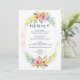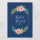 Flores de colores tropicales brillantes adornadas con flores azules rosas y amarillas adornadas con un moderno marco ovalado de alambre de oro. Boda o novia mostró plantilla de menú.