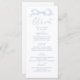 Elegante vamos a comer el menú boda presenta un arco de cinta dibujado a mano con modernos tipos de letra manuscritos en azul polvoriento, limpio y sencillo. Ideal para un boda romántico moderno, boda singularmente divertido, boda informal elegante. Vea todas las piezas coincidentes de la colección.