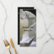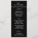 Menú degustación Boda de la Magnolia Blanca diseñado con una elegante Flor de Magnolia Blanca sobre un fondo negro. El texto incluye: Menú, Los nombres de la novia y del novio y la fecha del Boda. El texto inverso incluye: Su selección de aperitivos, Entre y postres. Para personalizar, simplemente inserte los detalles del menú en nuestra plantilla sencilla, reemplazando el texto de ejemplo.