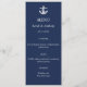 Menú Náutico, azul marino, ancla y Boda moderno. Por favor, personalícelo con sus detalles.