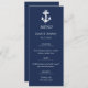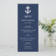 Menú Náutico, azul marino, ancla y Boda moderno. Por favor, personalícelo con sus detalles.