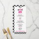 Este es un menú de la fiesta de cumpleaños del coche de raza rosada.