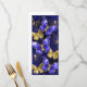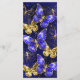 Composición de lujosas mariposas de zafiro y joyas de oro sobre fondo de textura azul.