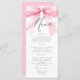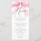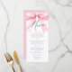 Añade un toque de encanto a tu ducha de novia con esta tarjeta de menú de Coquette Bow rosa. Diseñada para complementar su elegante celebración, esta carta cuenta con un suave acento rosa del arco de coqueta, lo que le aporta un ambiente dulce y lúdico a su evento. Ya sea para un brunch sofisticado, una deliciosa cena o deliciosos postres, esta carta muestra sus propuestas de manera elegante y acogedora.