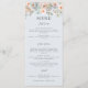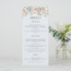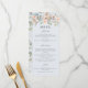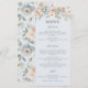 Elementos: Suaves florales pastel sobre un fondo azul pálido. Formato tradicional. Fuentes serif clásicas. Colores: melocotón, coral, crema, marfil, salvia, menta, azul polvoriento. Temas: suave, verano, primavera, sutil, romántico, soñador, cabaña, cottagecore, vintage, elegante. Colección: Boda de coral azul Pastel de jardín de cabras Tipo de producto: Menú