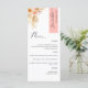 ¿Por qué gastar en las tarjetas de lugar y de menú cuando se puede tener un elegante menú todo en uno personalizado con cada nombre de invitado? Diseño contemporáneo, sencillo y elegante con exquisitos detalles florales acuáticos en una hermosa mezcla de melocotón, corales naranjas, rubor, polvorientos, crema y champán. Elementos modernos de caligrafía escrita a mano. Stripe en la esquina superior derecha en tono rosa coral con el nombre del invitado en negro. De vuelta en el mismo coral rosa que la franja. Capacidad de cambiar el color de la banda o de vuelta seleccionando "personalizar más adelante". NOTA: por favor, un pedido individual para cada menú agregando el nombre del cliente en el menú, agregando el menú en el carrito de la compra; luego regresa al menú, agrega el segundo nombre del invitado, agrega el menú al carrito de la compra...continúe con este proceso con todos los nombres de invitados en la lista. Zazzle no recibe listas de nombres de invitados para imprimir. Para los primeros nombres breves añada con la barra espaciadora del teclado algunos "espacios" vacíos antes de un nombre a otro. Diseño disponible en una variedad de opciones de color. Parte de nuestra colección "Peach Floral Delight and Coral" con una variedad de productos de coordinación disponibles. Visita toda la colección en: https://www.zazzle.com/collections/peach_floral_delight_with_coral-119881887592815880