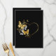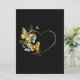Marco dorado en forma de corazón, decorado con oro, joyas y mariposas blancas sobre fondo negro.
