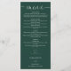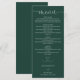 Este elegante menú de boda con corazón verde esmeralda y tipografía moderna se puede personalizar con su información en tipografía chic. Diseñado por Thisisnotme©