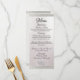 Corazón entrelazado y cinta embellecen este menú boda, la parte posterior tiene un marcador de posición monograma. Disponible con diferentes colores para el tema boda. (La cinta de opciones se simula en la ilustración). Diseñado para coordinar con la colección de Bodas "Dos se convertirán en uno - plata y oro". Para cambiar detalles, haga clic en "Personalizar". Para mover el texto o cambiar el tamaño del texto, el tipo de letra o el color, haga clic en "Haga clic en el personalizar"