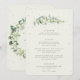 Una carta crema de tres platos boda con un tallo de nevadas pintadas a mano y eucalipto delante y una corona en la espalda. Todo el texto es completamente editable, y los puntos dispersos en la parte delantera y trasera se pueden borrar antes de pedir si lo prefiere. Por favor, vea esta colección en mi tienda para menús con arreglos florales alternativos, un número diferente de cursos y en diferentes tamaños, colores y formas. También hay elementos de coordinación disponibles.