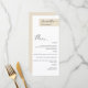¿Por qué gastar las tarjetas en el lugar y las tarjetas de menú cuando se puede tener un elegante menú todo en uno personalizado con el nombre de cada huésped? Diseño contemporáneo, sencillo y elegante con una caligrafía escrita a mano. Una raya en la esquina superior derecha en un tono crema beige con el nombre del cliente en negro. De vuelta en la misma crema beige que la franja. Capacidad para cambiar los colores de banda o de vuelta seleccionando "personalizar más adelante". NOTA: por favor, un pedido individual para cada menú agregando el nombre del cliente al menú, añadiendo el menú al carrito de la compra; luego volviendo al menú, añadiendo un segundo nombre de invitado, agregando el menú al carrito de la compra...continúe con este proceso con todos los nombres de invitados en la lista. Para los primeros nombres breves, añada con la barra espaciadora del teclado algunos "espacios" vacíos antes del nombre, para centrarlos mejor. Parte de nuestra colección "Rótulos y productos de eventos de los tonos de la Tierra" con una variedad de productos de coordinación disponibles.