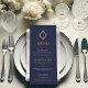 Menú Cresta Monograma Azul Marino Falso Oro Elegante Bo