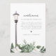 Esta carta de bienvenida a la boda y el cronograma presentan magnolias de acuarela y un poste de lámpara inspirado en el barrio francés. Utilice esta plantilla para editar todo el texto, fuente, color de fuente y color de fondo para que coincida con el estilo de su evento. Haga clic en 'haga clic para personalizar aún más' en la sección de personalización para abrir el editor completo. Para agregar nuevos iconos, visite https://www.svgrepo.com/ y busque el icono que necesite. Descargue como .svg y luego arrastre y suelte en el editor de Zazzle. Cambie el color del icono en el lado derecho del editor.