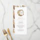 Este elegante menú de Acción de Gracias incluye hermosas hojas de acuarela, calabazas, naranjas y flores dispuestas en una hermosa corona con el lema "Regale gracias". La parte posterior del menú es naranja para coincidir con las obras de arte de la parte delantera. Fácilmente personalizable con los detalles de su menú.