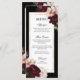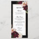 Personalice esta elegante carta de menú delgado de boda de forma fácil y rápida. Simplemente haga clic en el botón Editar usando herramientas de diseño para editar el texto, cambiar fuentes y colores de fuentes. Con hermosas flores reales de borgoña y rubia sobre un fondo negro oscuro. Elementos coincidentes disponibles en el almacén. c) Somerset Fine Paperie