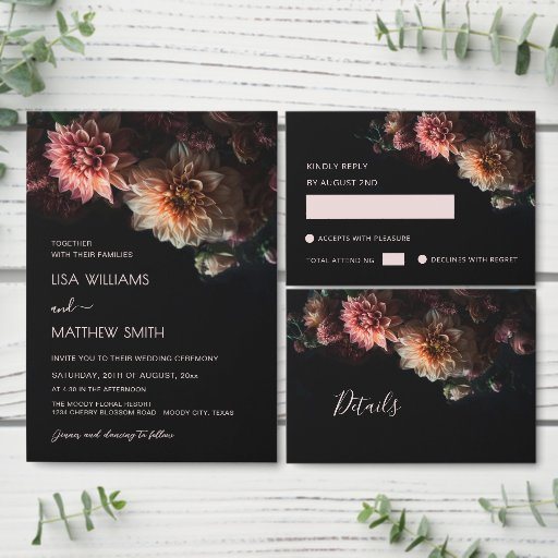 Menú Dark Moody Flowers Chrysanthemum Wedding