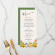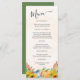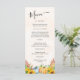 Este elegante menú de la cena de Acción de Gracias presenta un bonito diseño acuático con calabazas, flores y hojas en vibrantes tonos naranja, rosa, amarillo, azul y verde, lo que le confiere un ambiente perfecto para sus vacaciones.