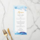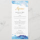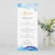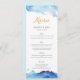 Tarjetas de menú o programas de boda para que su boda coincida con sus invitaciones a acuarela azul y oro. El primer a tercer curso y las bebidas están incluidas para el personalizar. © Mini Impresiones Moi