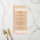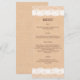 Un marco blanco bellamente ilustrado decora este menú burlap de color claro. Se imprime en una tarjeta de rack como una opción asequible.