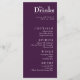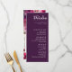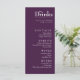 Presentando el menú Boda "Las bebidas" del Encanto de Fuchsia: Watercolor Boda Suite, una guía sofisticada y personalizada para su celebración. En la parte delantera del menú encontramos un fondo burdeos y una selección de vinos, cócteles, cervezas y licores, que garantizan una experiencia agradable a los clientes. El elegante encabezado "The Drinks" marca el tono, creando una presentación de buen gusto. Debajo de la selección de bebidas, hay un espacio reservado para los nombres de las parejas y la fecha, añadiendo un toque personalizado a este detalle boda esencial. Este toque de personalización permite que el menú sirva como un recuerdo memorable para su día especial. Volando hacia el reverso, una imagen de fondo muestra una escena serena de flores de fucsia y hiedra en el fondo violeta profundo, creando una estética visualmente llamativa y encantadora. Aquí, usted tiene la libertad de incluir texto de personalizable, ya sea un mensaje especial, una cita o detalles adicionales sobre su historia de amor. El menú Boda "The Drinks" no sólo sirve como guía práctica para los clientes, sino que también sirve como un elemento delicioso y personalizado que incorpora maravillosamente el vibrante y encantador ambiente del Fuchsia Enchantment: Watercolor Boda Suite en sus festividades bodas.