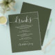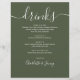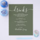 Menú de Bebidas de Boda en Verde Oliva Moderno