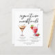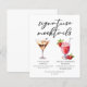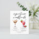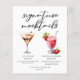 Esta hoja de menú de mocktails de postre presenta 2 bebidas sin alcohol y sus ingredientes para su fiesta o barra de bodas. Un Martini de chocolate y un Daiquiri de fresa virgen dibujados encima de su texto de evento personalizado.