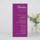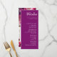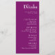 Presentando el menú Boda "Las bebidas" del Encanto de Fuchsia: Watercolor Boda Suite, una guía sofisticada y personalizada para su celebración. En la parte delantera del menú encontramos un fondo violeta profundo, decorado con una selección de vinos, cócteles, cervezas y licores, que garantizan una experiencia agradable a los clientes. El elegante encabezado "The Drinks" marca el tono, creando una presentación de buen gusto. Debajo de la selección de bebidas, hay un espacio reservado para los nombres de las parejas y la fecha, añadiendo un toque personalizado a este detalle boda esencial. Este toque de personalización permite que el menú sirva como un recuerdo memorable para su día especial. Volando hacia el reverso, una imagen de fondo muestra una escena serena de flores de fucsia y hiedra en el fondo violeta profundo, creando una estética visualmente llamativa y encantadora. Aquí, usted tiene la libertad de incluir texto de personalizable, ya sea un mensaje especial, una cita o detalles adicionales sobre su historia de amor. El menú Boda "The Drinks" no sólo sirve como guía práctica para los clientes, sino que también sirve como un elemento delicioso y personalizado que incorpora maravillosamente el vibrante y encantador ambiente del Fuchsia Enchantment: Watercolor Boda Suite en sus festividades bodas.