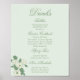 Cartel de menú de bar de boda verde salvia 8x10 con tipografía de letra elegante y acento floral romántico. Perfecto para mostrar cócteles, burbujas y bebidas especiales de manera elegante y organizada, este cartel personalizable eleva la configuración de su barra de recepción. Diseñado para complementar bodas inspiradas en jardín, cottagecore y vintage con una estética refinada y cohesiva.