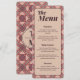 Eleva tu decoración de mesa con este menú moderno de Terracota y Rosa Polvo. El diseño esbelto y los patrones geométricos añaden un toque de diseñador a tu cena de recepción.