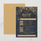 Haga que sea fácil para sus invitados responder con esta elegante tarjeta de RSVP con selecciones de comidas, parte de la Colección de Boda Rustic Glam. Diseñada con luces de cuerda doradas brillantes y un fondo de falso denim azul marino profundo, esta tarjeta de respuesta combina el encanto rústico con un estilo sofisticado. El diseño incluye líneas de escritura doradas en negrita para una visibilidad clara, lo que facilita a los invitados completar sus nombres, asistencia, preferencias de comida y restricciones dietéticas. Perfecta para bodas en graneros, recepciones en clubes campestres o celebraciones nocturnas, esta tarjeta se coordina perfectamente con sus invitaciones de boda, Save the Dates y señalización. Personalice fácilmente la fecha límite de RSVP, las opciones de plato principal y cualquier nota especial para que coincida con los detalles de su evento.