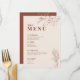 Este menú se caracteriza por su estilo boho, ilustraciones florales, tonos neutros y terrosos, y colores beige, con una mezcla de diferentes estilos de letra, a menudo en diferentes tamaños, para crear un aspecto único y ecléctico que hace que estos menús tengan una estética natural.