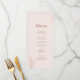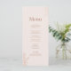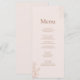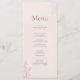 Este ligero menú de boda de terracota presenta tonos suaves de melocotón, arte de línea botánica elegante y tipografía moderna refinada. Una adición perfecta para bodas boho, rústicas-chic, de jardín o modernas, este menú se coordina perfectamente con el conjunto de invitaciones monocromas de terracota. Personalice los cursos y la redacción para que coincida con su evento.