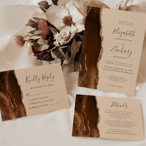 Elegant Mocha Brown Gold Agate Tan Wedding SuiteDiseñado por The Golden Acanthus