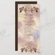 Un diseño de cazador de sueños con adornos dorados y marrones que incluye un círculo de bambú redondo con una red de vida con plumas de tonos marrones y cuentas rojas sobre un fondo suave de plumas para personalizar en tu gran día.