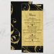 Tarjeta de Menú de Boda Chic con Remolino Floral Negro y Dorado Falso. Artículos coincidentes disponibles.