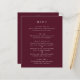 Menú de boda de estilo clásico con un diseño simple pero elegante en un color burdeos profundo que es perfecto para una boda de otoño o una boda de invierno / Navidad. Utilice la plantilla para agregar una foto o eliminarla en la herramienta de edición de diseño.