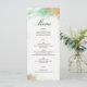 Muestre su delicioso menú en estas hermosas tarjetas: tamaño perfecto para colocar en cada plato. Este diseño cuenta con un fondo de mármol lujoso. Edite fácilmente los platos!