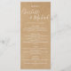 Tarjeta de menú de boda con firma elegante de kraft rústico con nombres de estilo de firma, esta tarjeta de menú moderna se puede personalizar con su información en letra blanca chic. Diseñado por Thisisnotme©